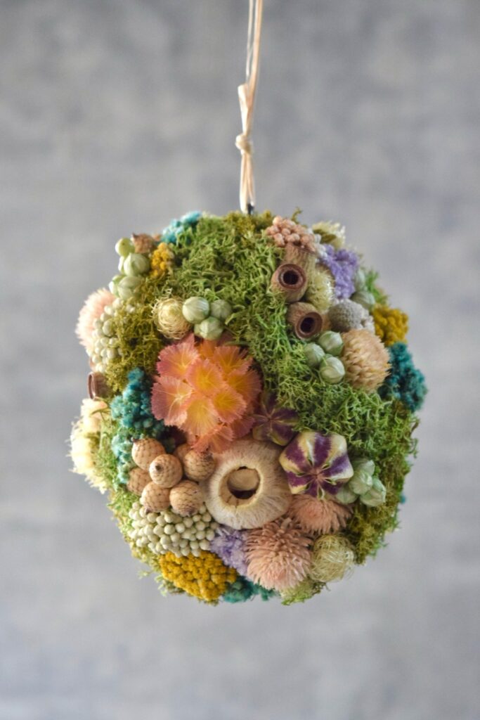 植物の立体造形物を吊るしのインテリアとして飾っていただけます。