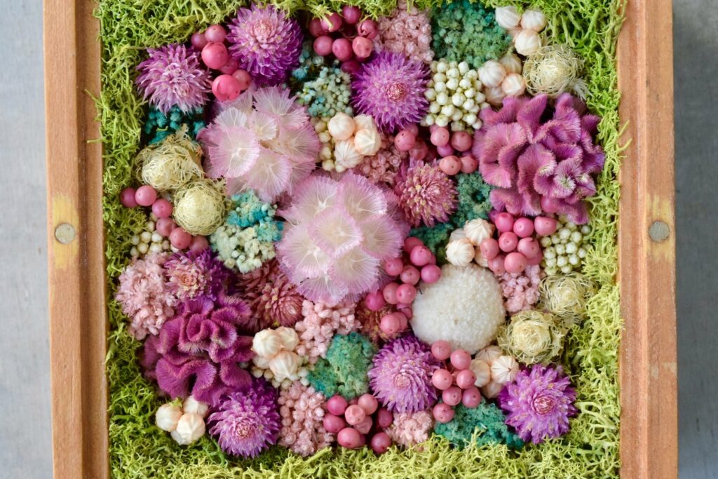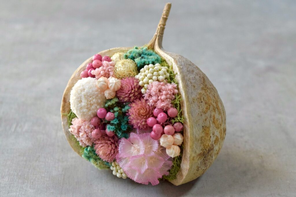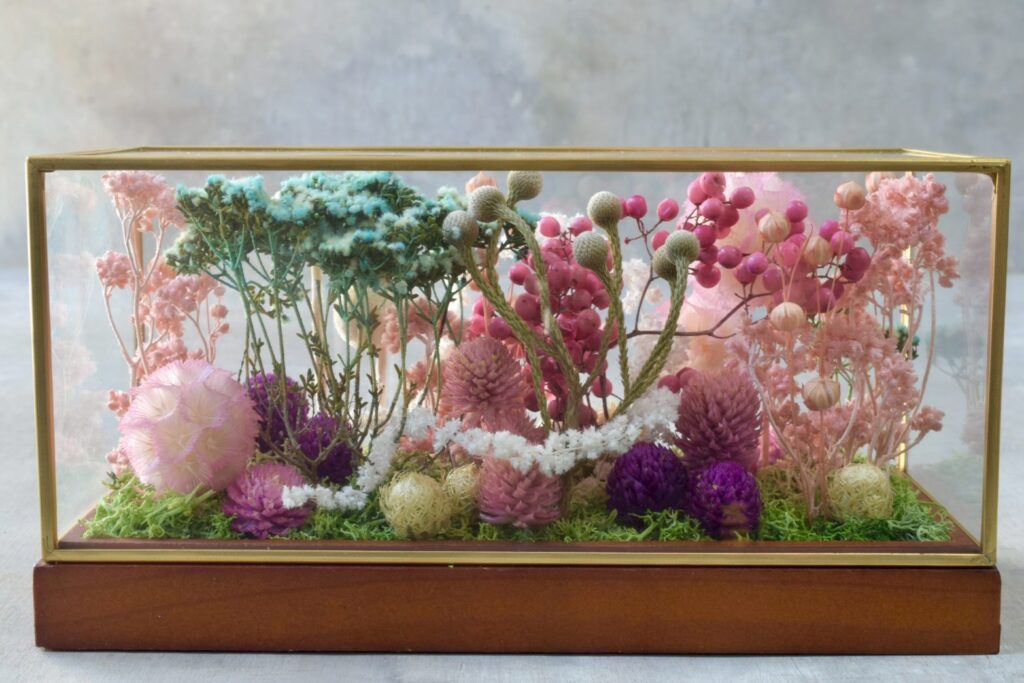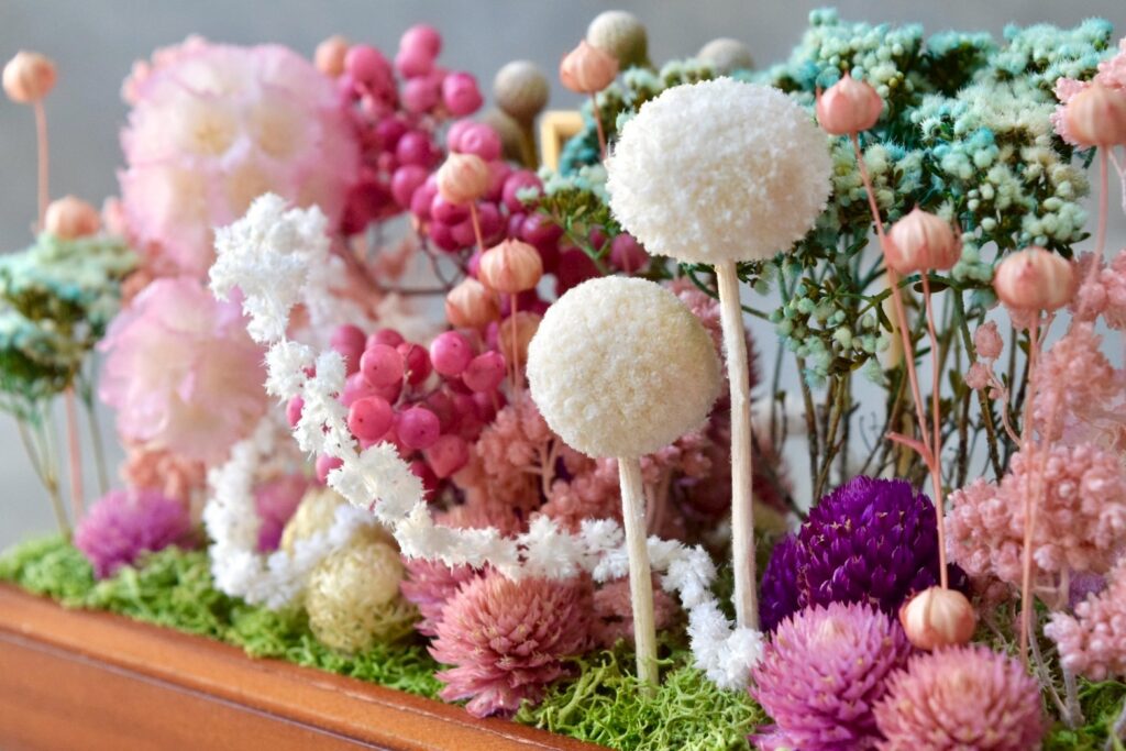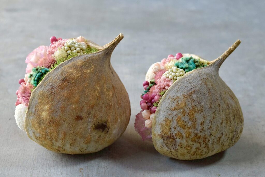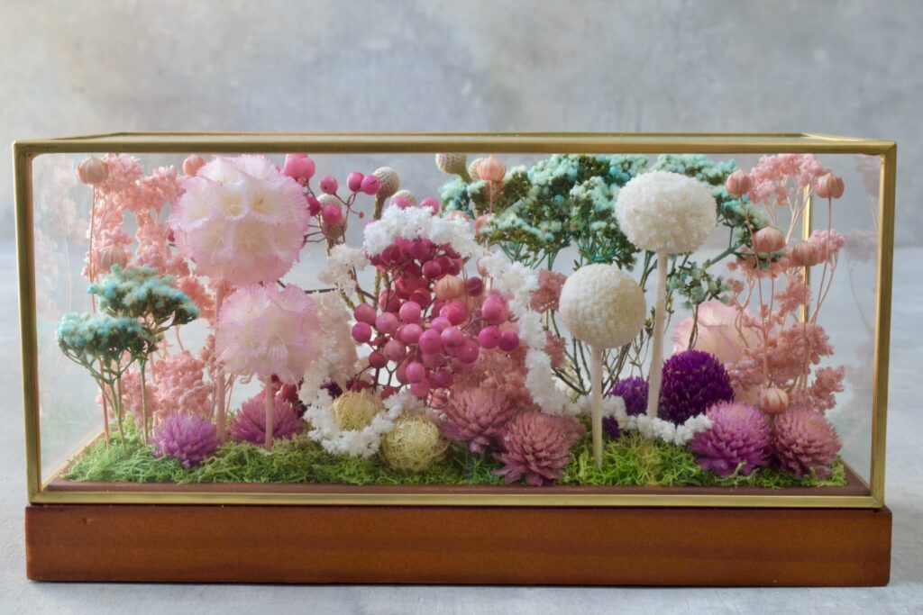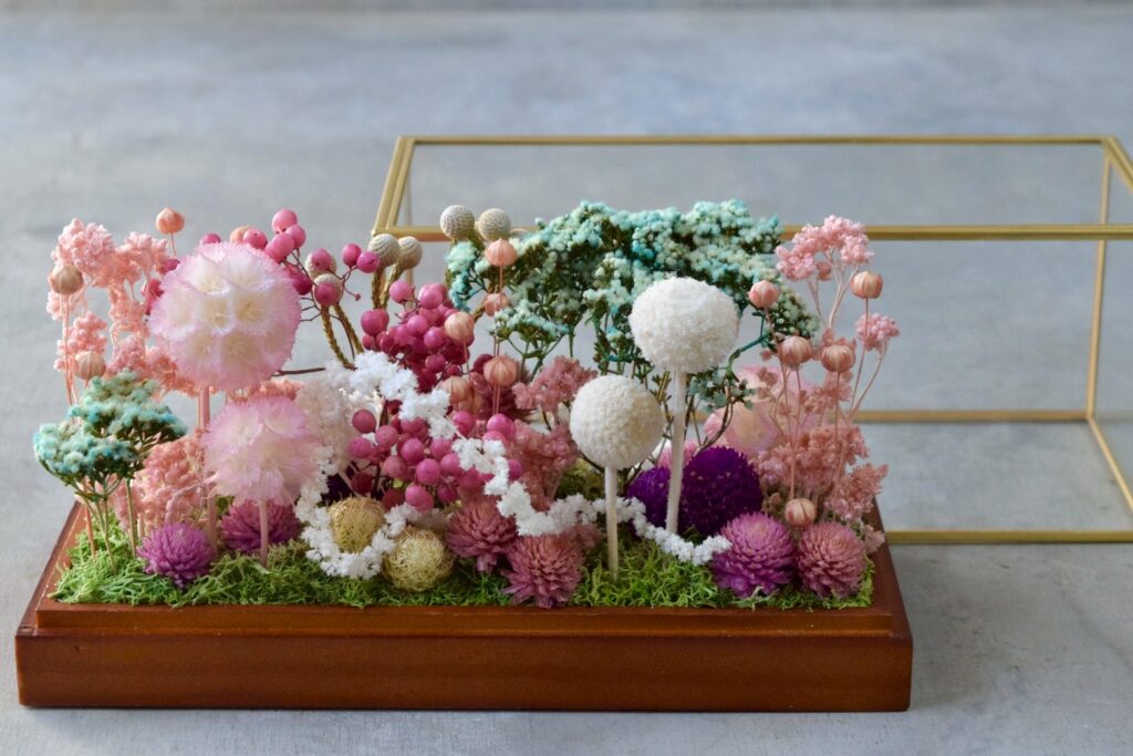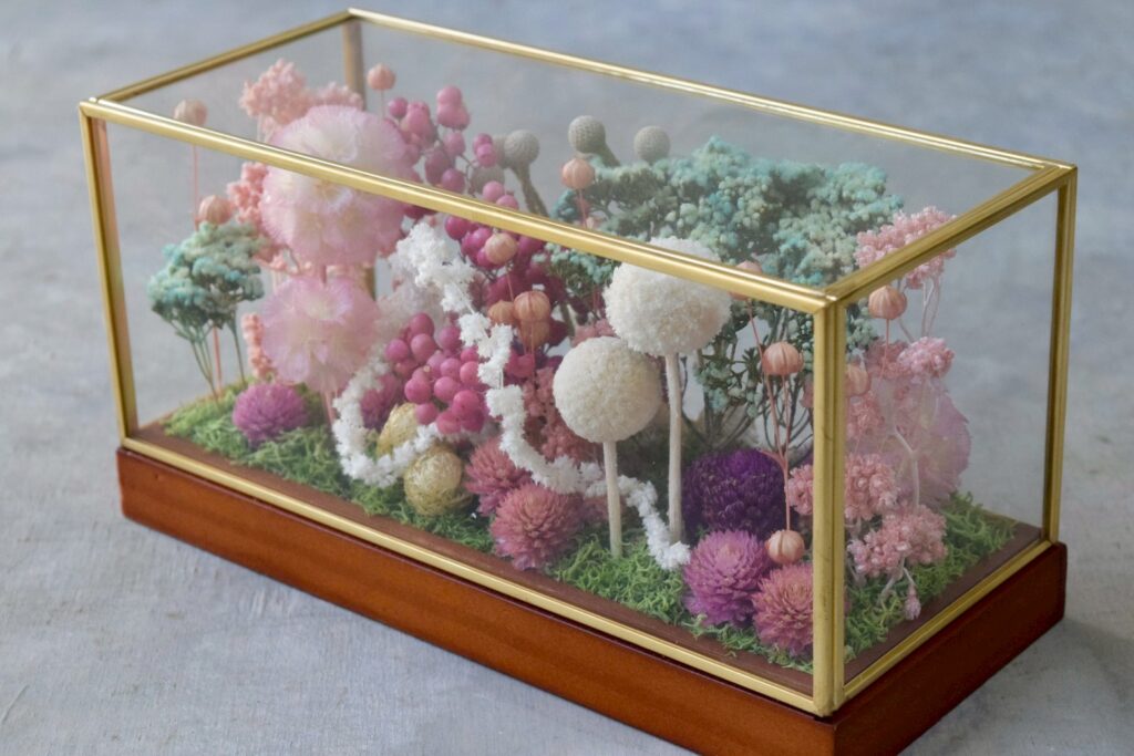 植物とミニチュアフードが合わさったジオラマ作品として、ミニチュアの世界観をお楽しみください。
