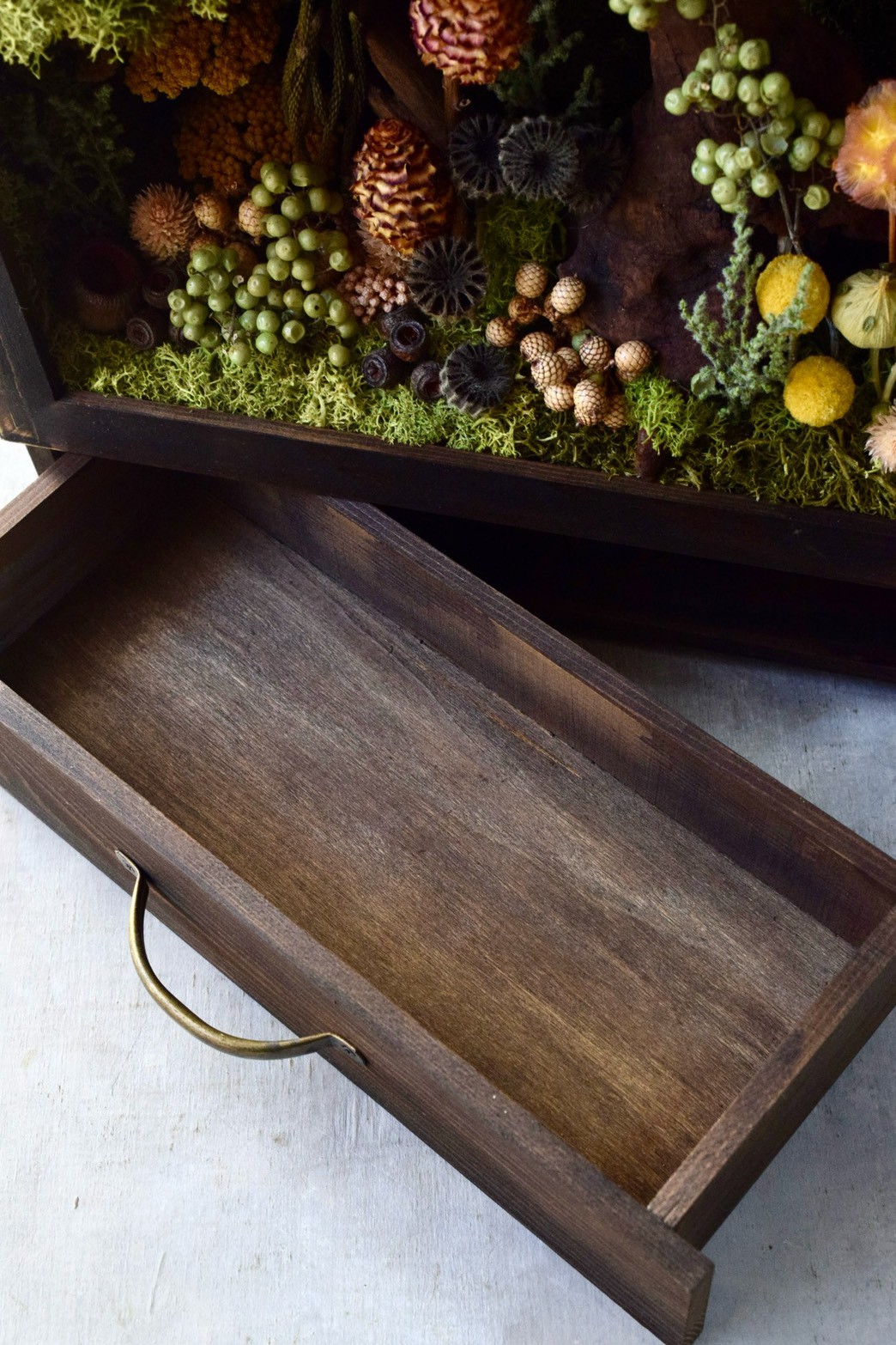 【東京の花屋】叢屋Kusamuraya|人気の生花・ドライフラワーのアンティーク雑貨・インテリア&ギフトアレンジメント|誕生日・記念日・自宅用におすすめ。 O-12 2025年12月15日 by kusamuraya 高さ35.5cm×横29cm×幅13.5cm ※キャビネットの扉は固定されています。 配送サイズ100 ¥22,000(税込) オーダーフォーム内の「希望内容」欄は「shopping」を選んでいただき、「shopping内商品番号」欄に「O-12」とご記入ください。 カートに追加 ※カートに入れた商品は自動でオーダーフォーム内に記入されます。記入された番号は手動での訂正が可能です。 オーダーフォーム 引き出し内寸(幅24.5cm×縦9cm×高さ4cm)
