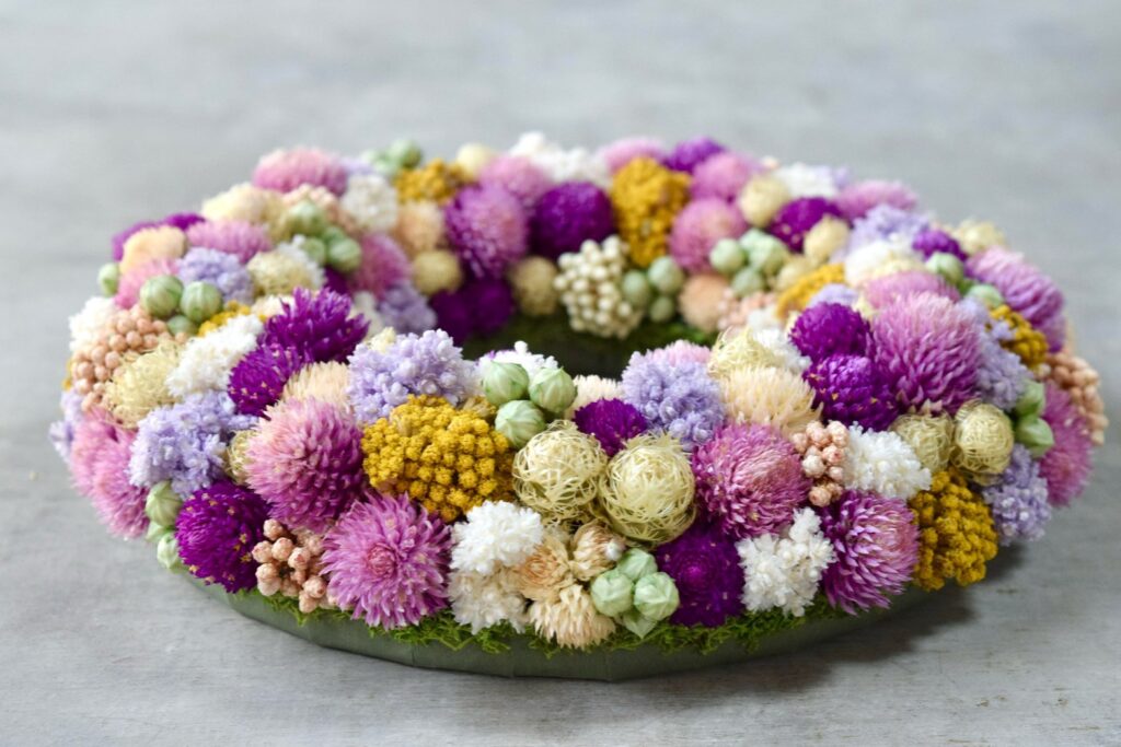【東京の花屋】叢屋Kusamuraya|人気の生花・ドライフラワーのアンティーク雑貨・インテリア&ギフトアレンジメント|誕生日・記念日・自宅用におすすめ。 W-5 2026年1月15日 by kusamuraya ドライフラワーがぎゅっと詰まった色彩豊かなリース φ18cm×厚さ4cm 配送サイズ80 ¥7,700(税込) オーダーフォーム内の「希望内容」欄は「shopping」を選んでいただき、「shopping内商品番号」欄に「W-5」とご記入ください。 カートに追加 ※カートに入れた商品は自動でオーダーフォーム内に記入されます。記入された番号は手動での訂正が可能です。 オーダーフォーム