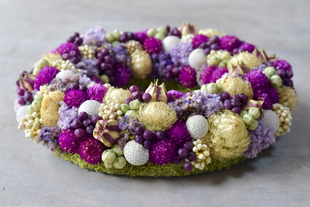 【東京の花屋】叢屋Kusamuraya|人気の生花・ドライフラワーのアンティーク雑貨・インテリア&ギフトアレンジメント|誕生日・記念日・自宅用におすすめ。 W-7 2025年10月27日 by kusamuraya ドライフラワーがぎゅっと詰まった色彩豊かなリース φ18cm×厚さ4cm 配送サイズ80 ¥7,700(税込) オーダーフォーム内の「希望内容」欄は「shopping」を選んでいただき、「shopping内商品番号」欄に「W-7」とご記入ください。 カートに追加 ※カートに入れた商品は自動でオーダーフォーム内に記入されます。記入された番号は手動での訂正が可能です。 オーダーフォーム