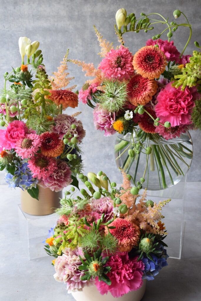 母の日の贈り物におすすめの華やかで明るいミックスカラーのフラワーギフトを3点ご用意いたしました。日頃の感謝をお花に込めて贈られてみてはいかがでしょうか。