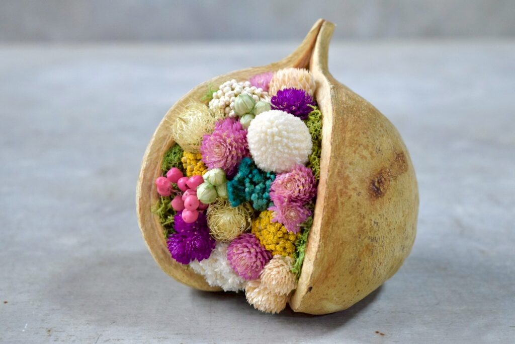 【東京の花屋】叢屋Kusamuraya|人気の生花・ドライフラワーのアンティーク雑貨・インテリア&ギフトアレンジメント|誕生日・記念日・自宅用におすすめ。 O-30 2025年10月22日 by kusamuraya 幸福をもたらすと言われれる縁起物のブッダナッツを器にしたドライフラワーアレンジ ブッダナッツの中にドライフラワーが詰まった2個1セットの植物インテリア ドライフラワー/ブッダナッツ/プリザモス 配送サイズ60 2個セット ¥6,800(税込) オーダーフォーム内の「希望内容」欄は「shopping」を選んでいただき、「shopping内商品番号」欄に「O-30」とご記入ください。 カートに追加 ※カートに入れた商品は自動でオーダーフォーム内に記入されます。記入された番号は手動での訂正が可能です。 オーダーフォーム