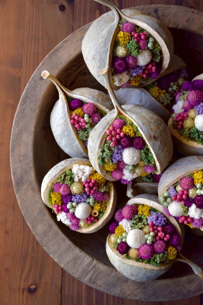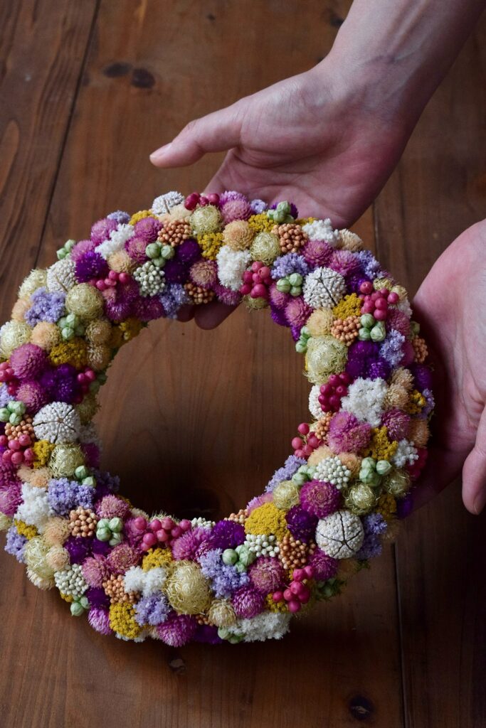 すべてドライフラワーで制作しているため、お手入れいらずで長くお楽しみいただけるのも魅力的。